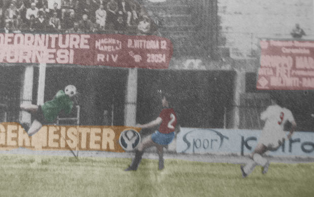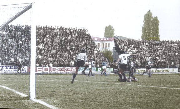 19 Febbraio 1978 pioggia al Mirabello nella partita con lo Spezia finisce 1 a 1 nella foto il gol di Ciceri.