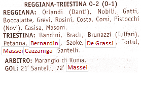 CHE HANNO GIOCATO CONTRO LA REGGIANA.